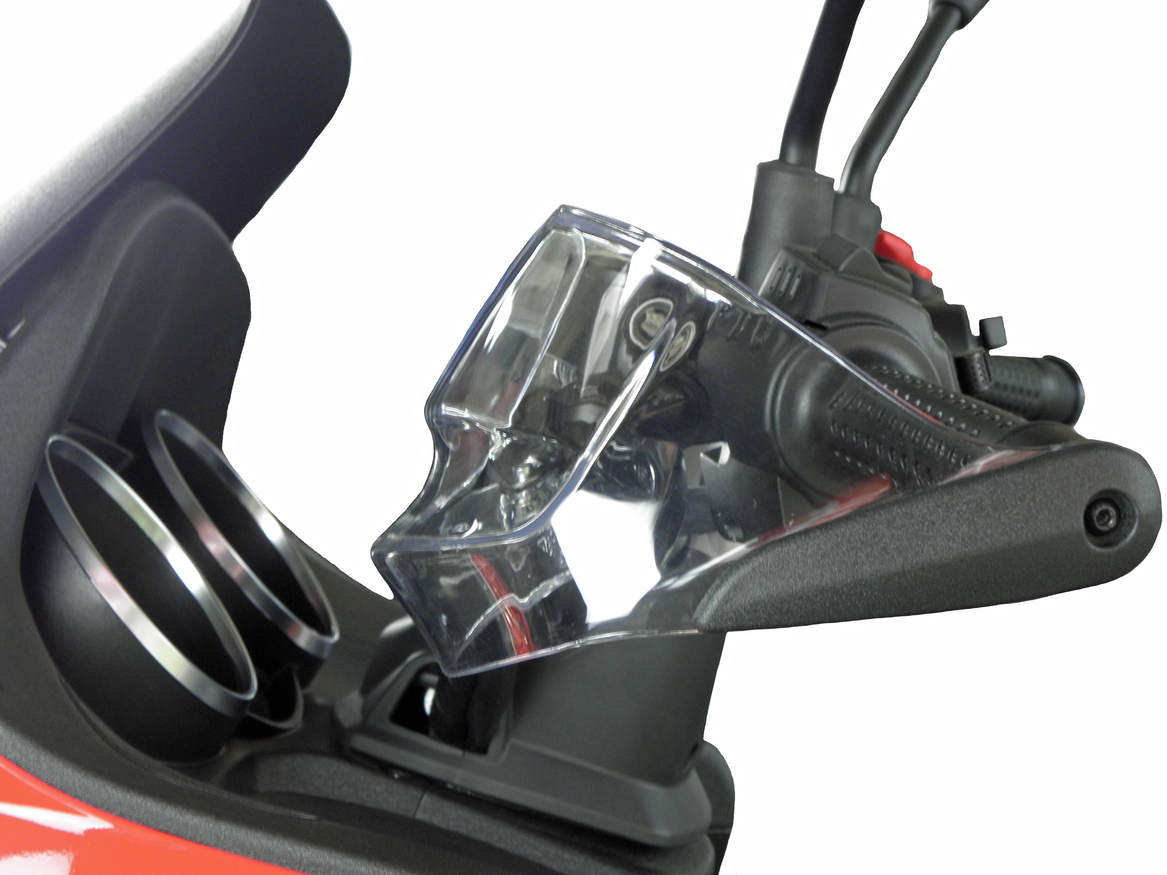 Ist die Originale Windschutzscheibe auf die höchste Position montiert können die Handprotektoren leicht die Scheibe berühren. Dieses beeinträchtigt in keinster Weise das Fahrverhalten Ihres Motorrollers.