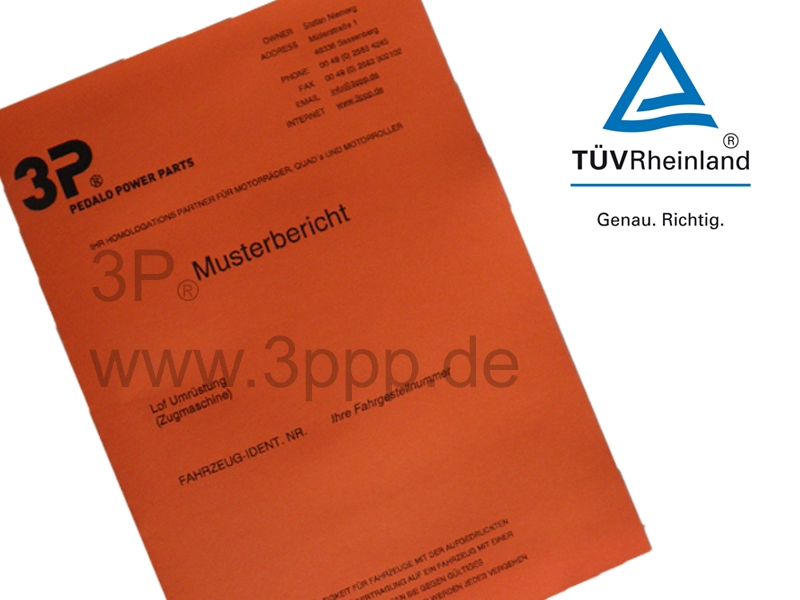 - 3P übernimmt keine Garantie für die erfolgreiche Einzelabnahme / 21 § Gutachten, da der Umbau durch den Käufer des Gutachtens vorgenommen wird.