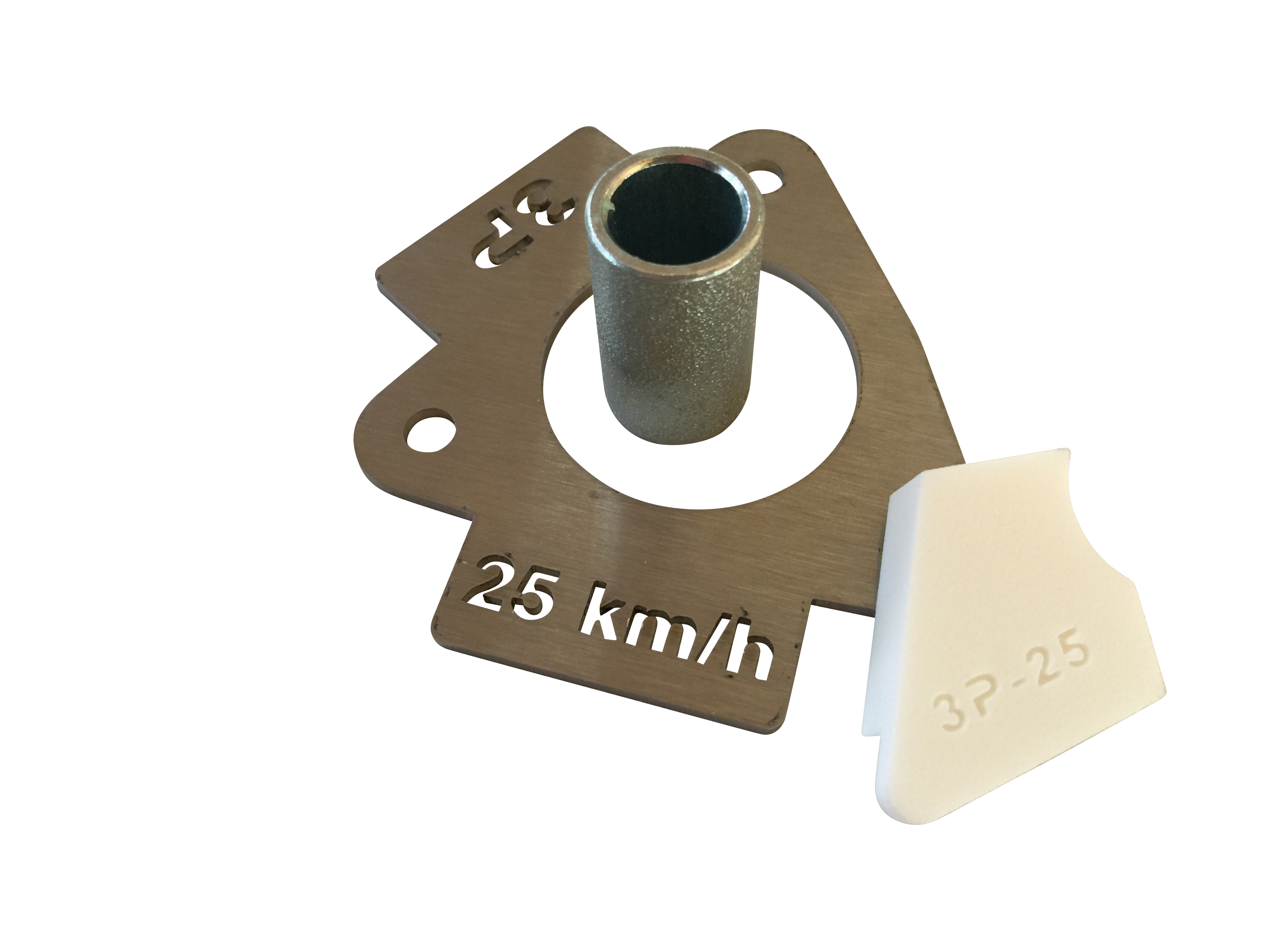 Mechanische Umrüstung zur Leistungsreduzierung von Fahrzeugen mit serienmäßiger Höchstgeschwindigkeit von 37 km/h auf 25 km/h.
